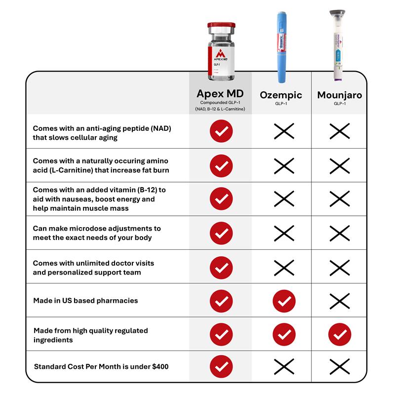 How does Apex MD GLP-1 differ from main brand GLP-1’s and other compounded GLP-1’s